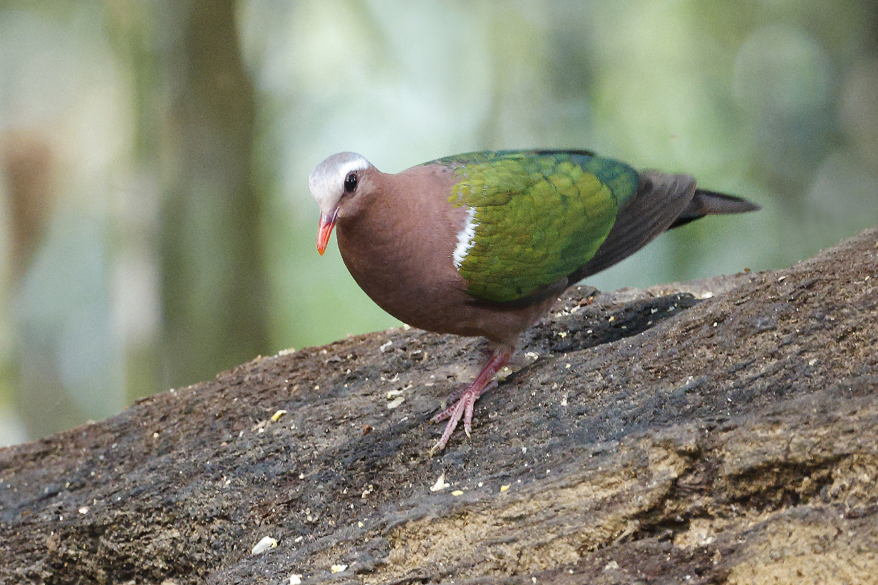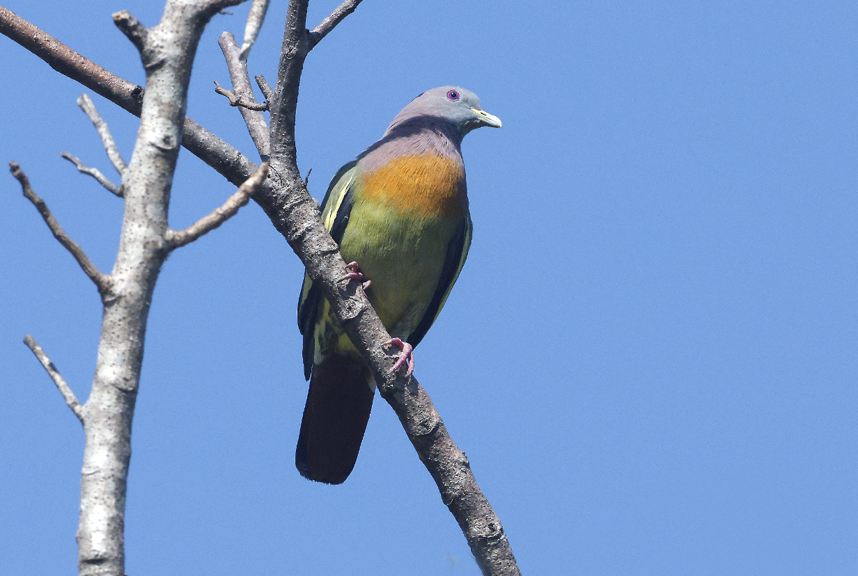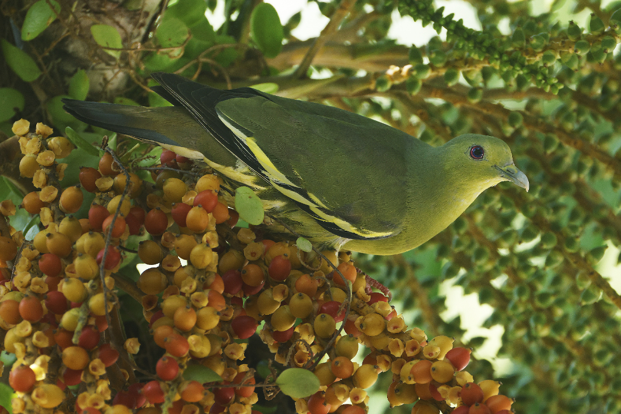 Male Pink-necked green pigeon near the beach of the Shangri-La Hotel (unfortunately with the shadow of a branch on his neck)