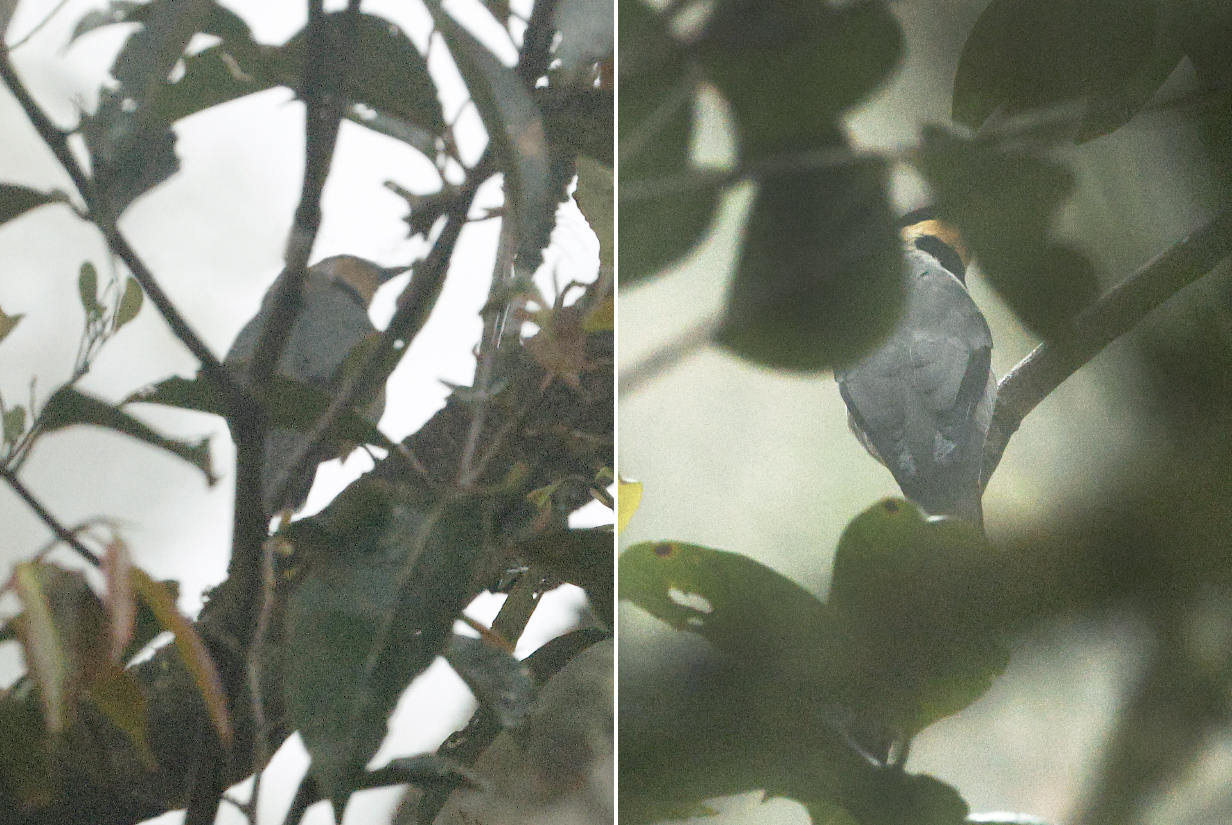 Despite several attempts to see Fruithunter, I never got more than these exceedingly bad views. It was always visible only through narrow lines of sight through thick bushes. With 9 people crowding around, I never managed a clear view. I take this as my life bird, although, of course, it is not satisfying. Birding can be like that.