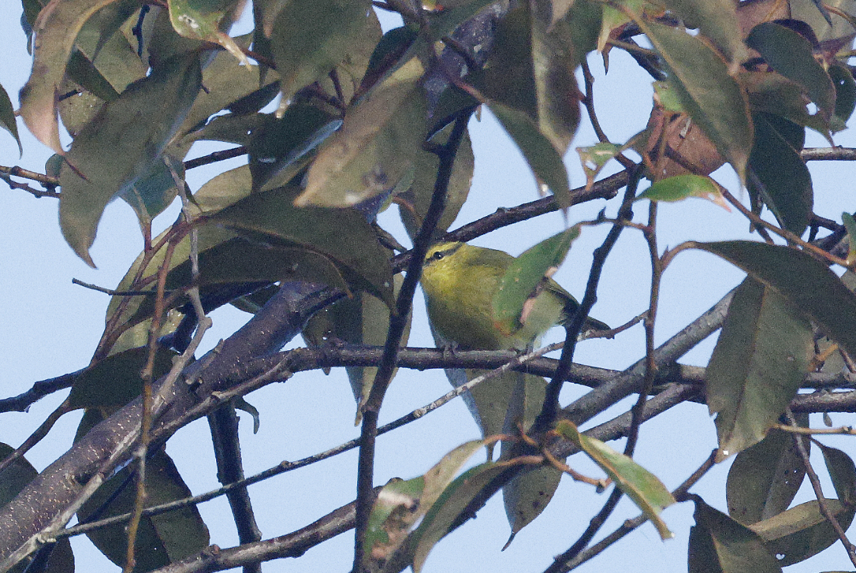 Mountain leaf warbler (Warblers are virtually always hard to photograph, and this one is no exception. I did not quite catch the whole face, but the ID is unmistakeable. This web site will include pictures of my life birds as often as possible, even when they are poor in quality. They cement my memory of what I saw.)