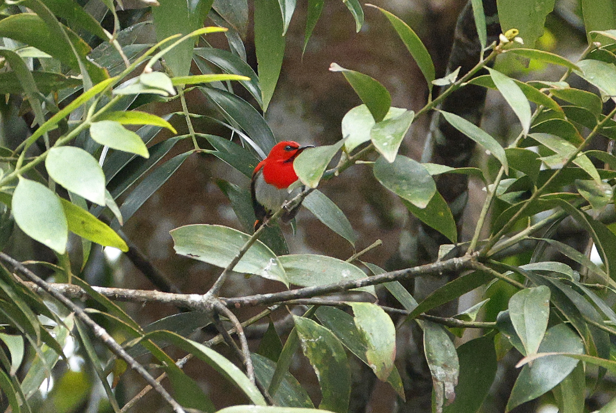 Temminck's sunbird (This is my life bird, in a lucky shot taken during a "split second" when he -- this is a male -- stood still.)